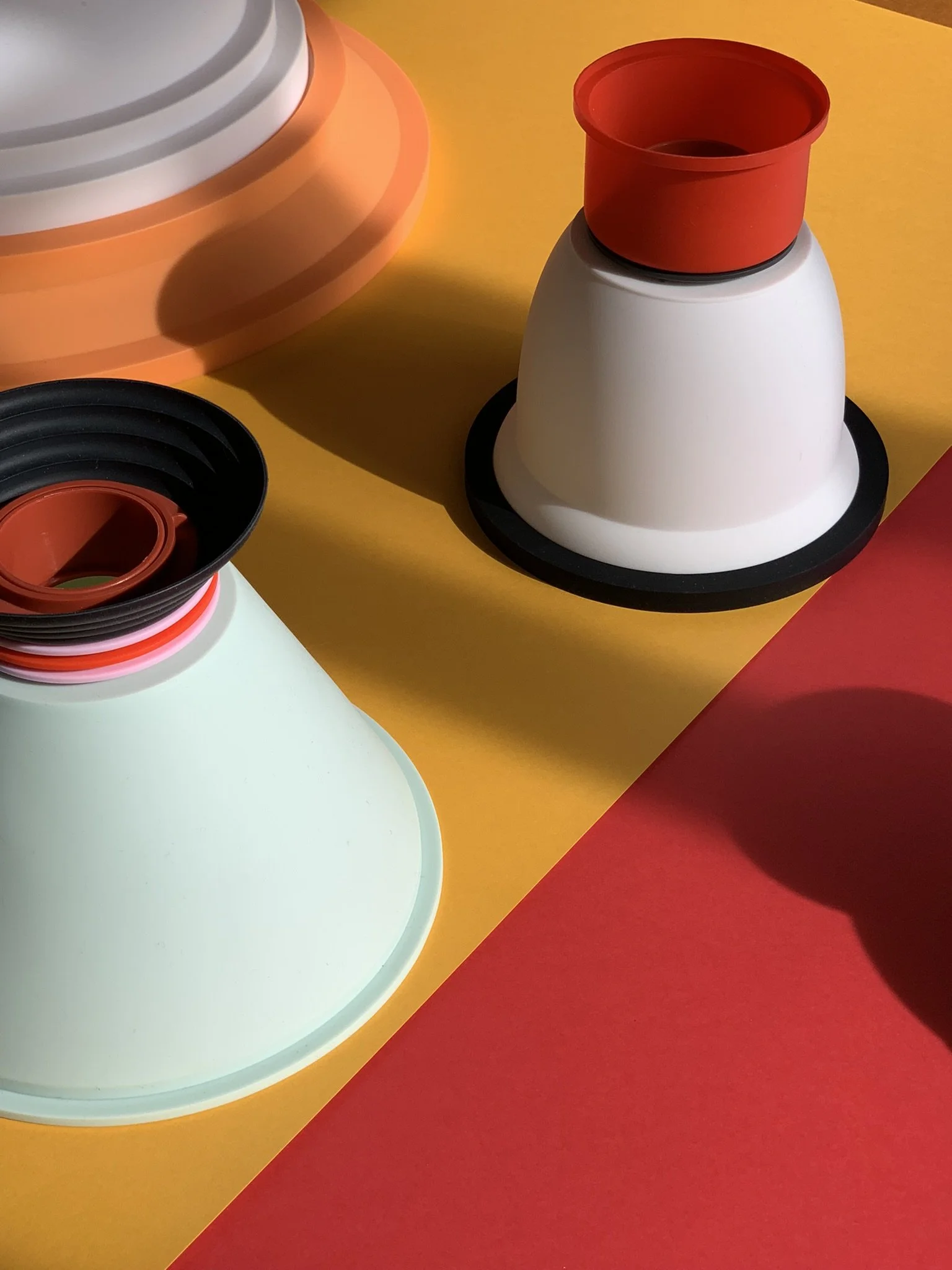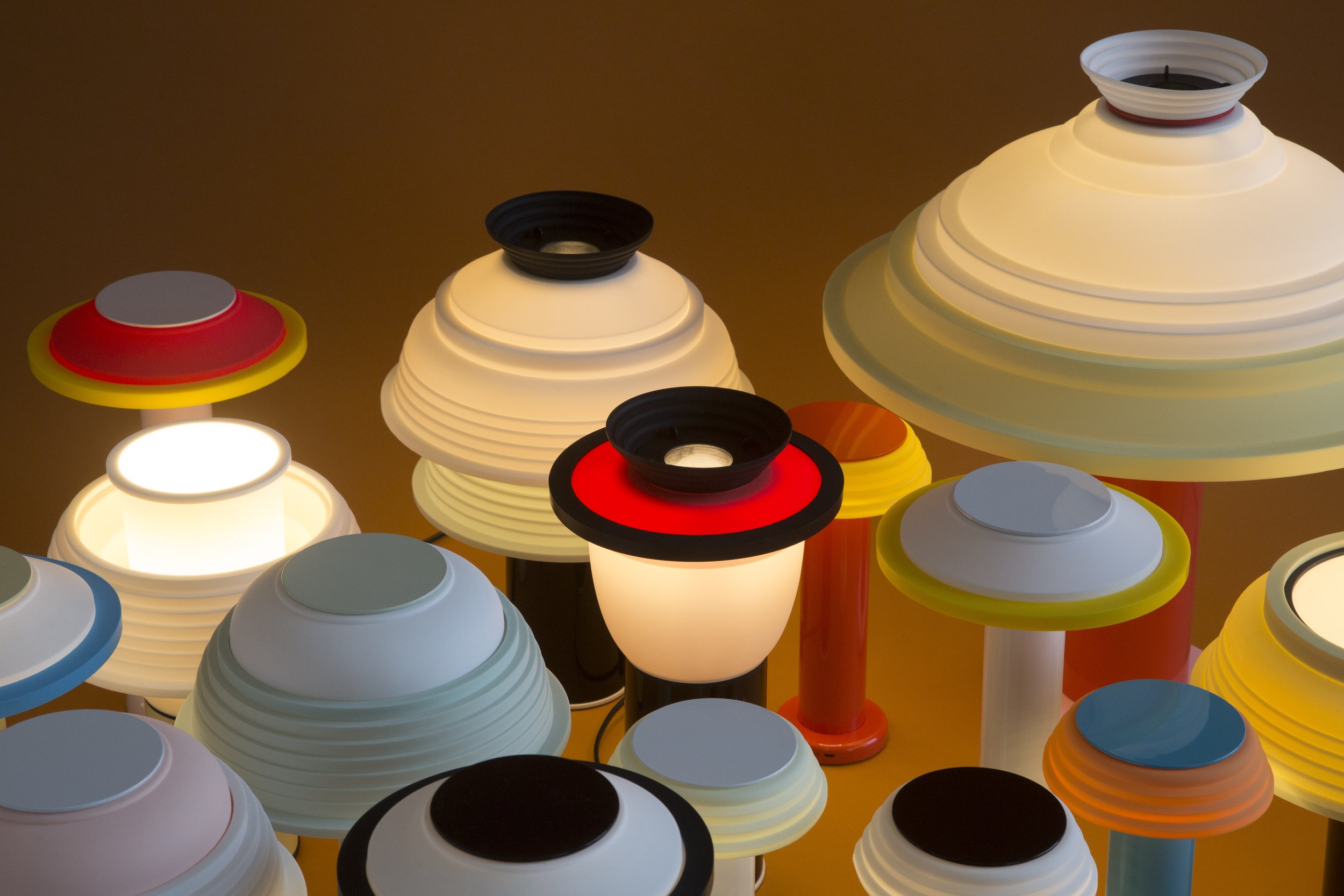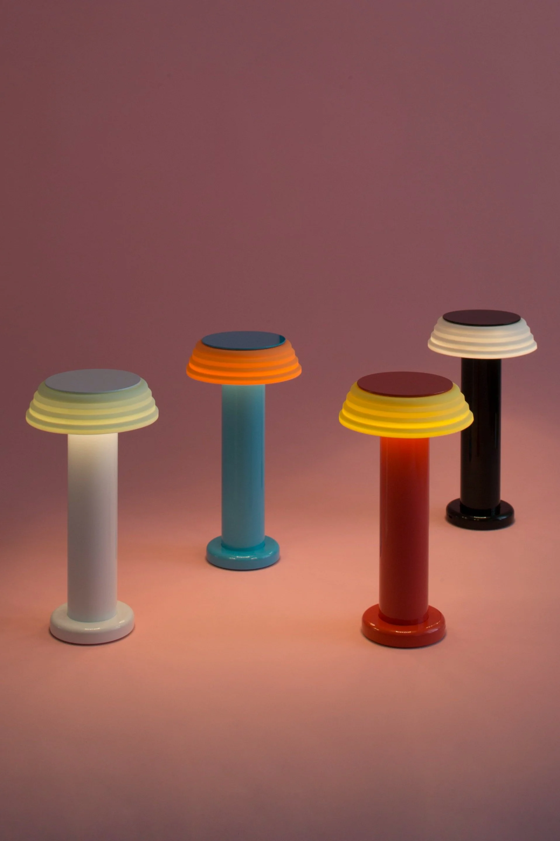 The silicone sets the lamps apart even before you turn them on; the colours and proportions are reshaped during use, spreading soft, comfortable light. All the versions share the same simplicity of forms, which can be grouped in various ways to create multiple configurations.